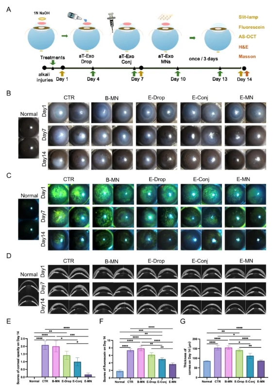 图5. MNs递送aT-Exo干预小鼠角膜碱烧伤