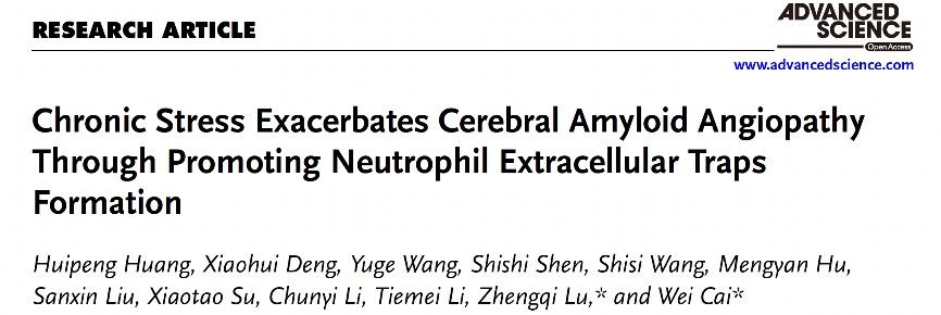 附属第三院脑病中心团队最新发现:慢性应激通过诱导中性粒细胞胞外网捕加剧脑淀粉样血管病
