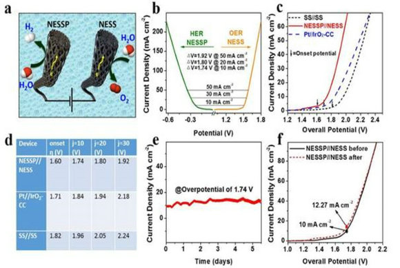 化学学院纪红兵教授、童叶翔教授课题组利用304型不锈钢网基电分解水析氢、析氧催化电极