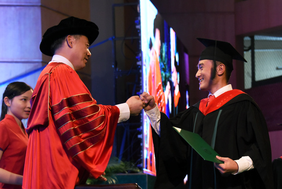 当主礼教授在权杖的引导下缓缓步入仪式现场,当礼堂里回荡掷地铿锵的“勖哉诸君,努力自强”,当校长与毕业生通过手掌传递温暖与力量,当毕业生朝向观礼亲友深情一鞠,世间最美好、最真挚的情感在这一刻永久地凝结。