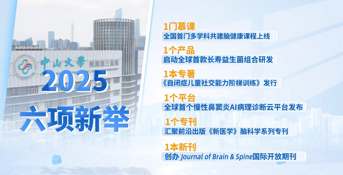 在本次论坛上,中山三院脑病团队发布了“6个1”成果:即1门慕课、1个产品、1本专著、1个平台、1个专刊、1本新刊。