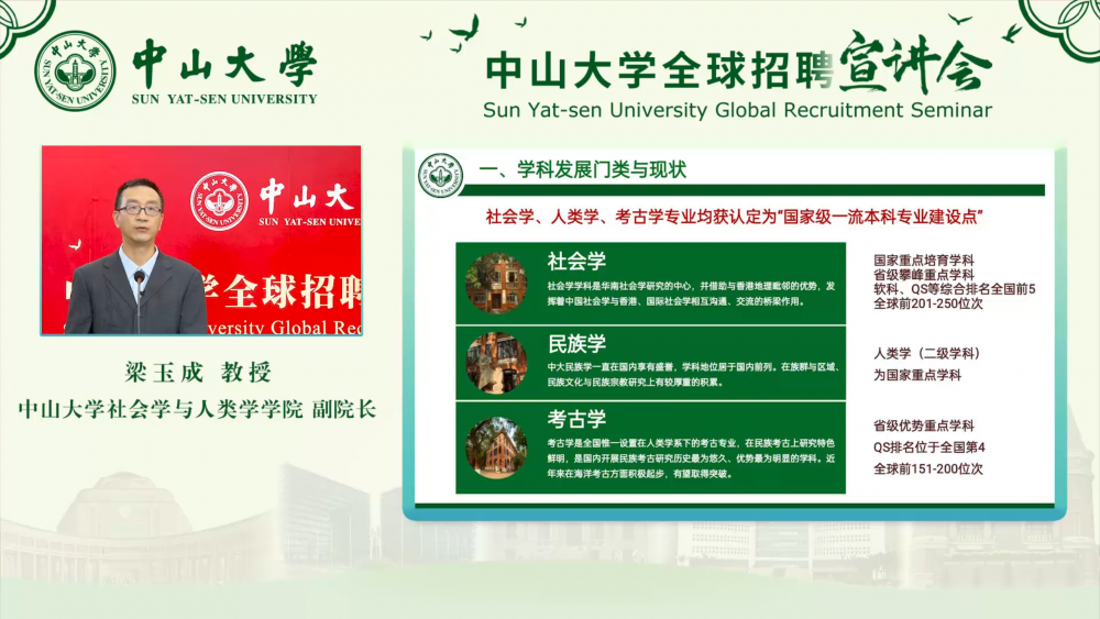 云宣讲期间,各院系还通过学者论坛、学术交流会等多种线上交流方式与青年学者深入沟通、进行学术碰撞,为各位青年学者选择中大、加盟中大提供有效沟通平台。